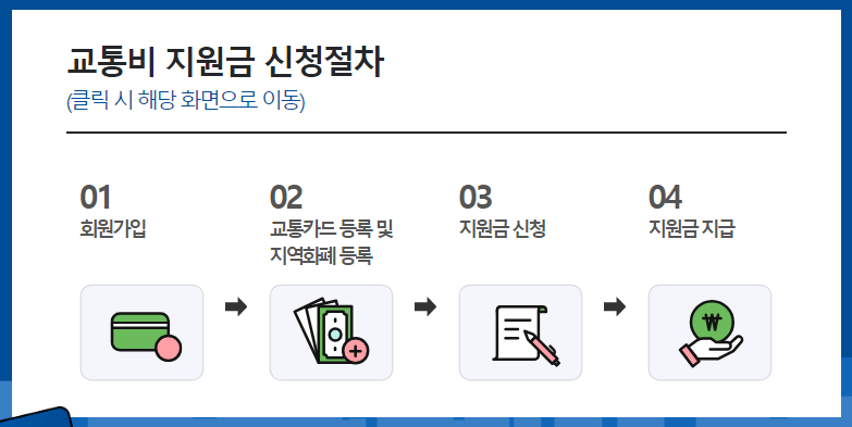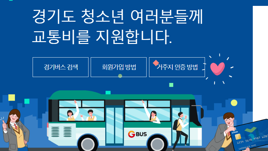 신청방법은 경기도 청소년 교통비 지원 포털사이트 방문하여 회원가입 후 교통카드와 지역화폐를 등록하고