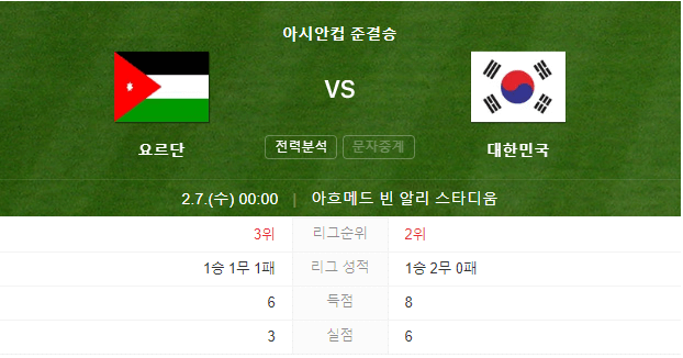 대한민국 VS 요르단 준결승전 2.7(수) 00:00