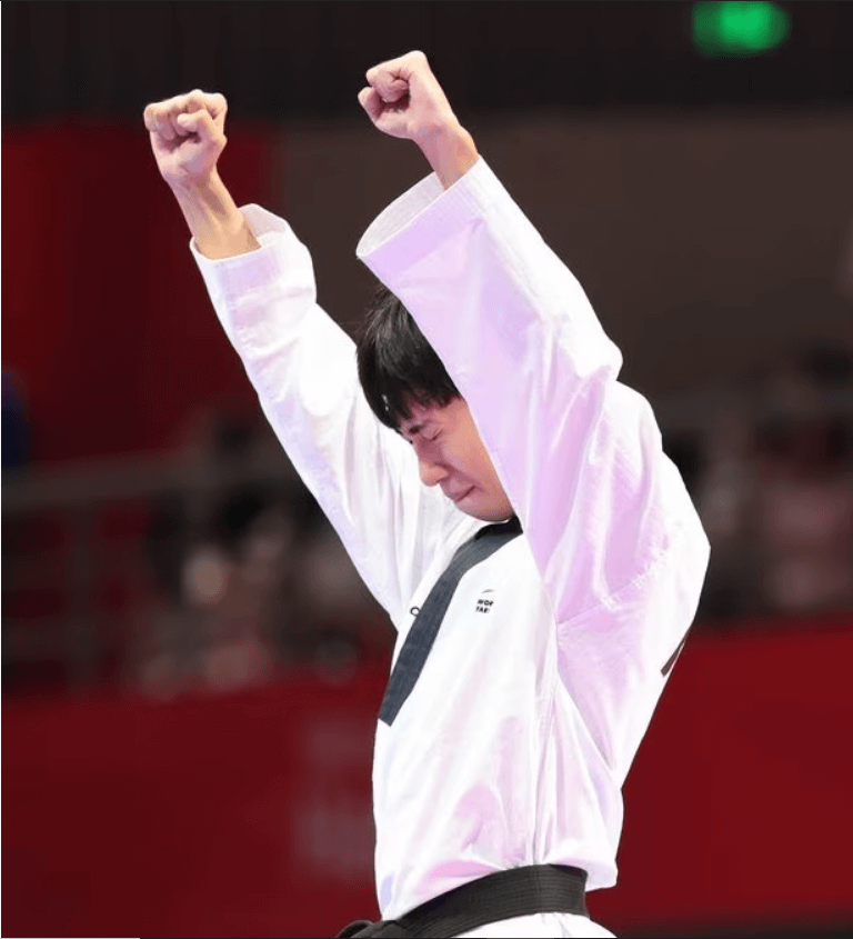 강완진 선수는 공인 품새 고려와 자유 품새로 치룬 결승전 1, 2경기에서 각각 8.000과 7.460 점수를 받아 대만의 마윈 중 (7.880, 7.080)을 누르고 이번 대회 한국 대표단을 통틀어 첫 번째 금메달을 목에 걸었습니다.